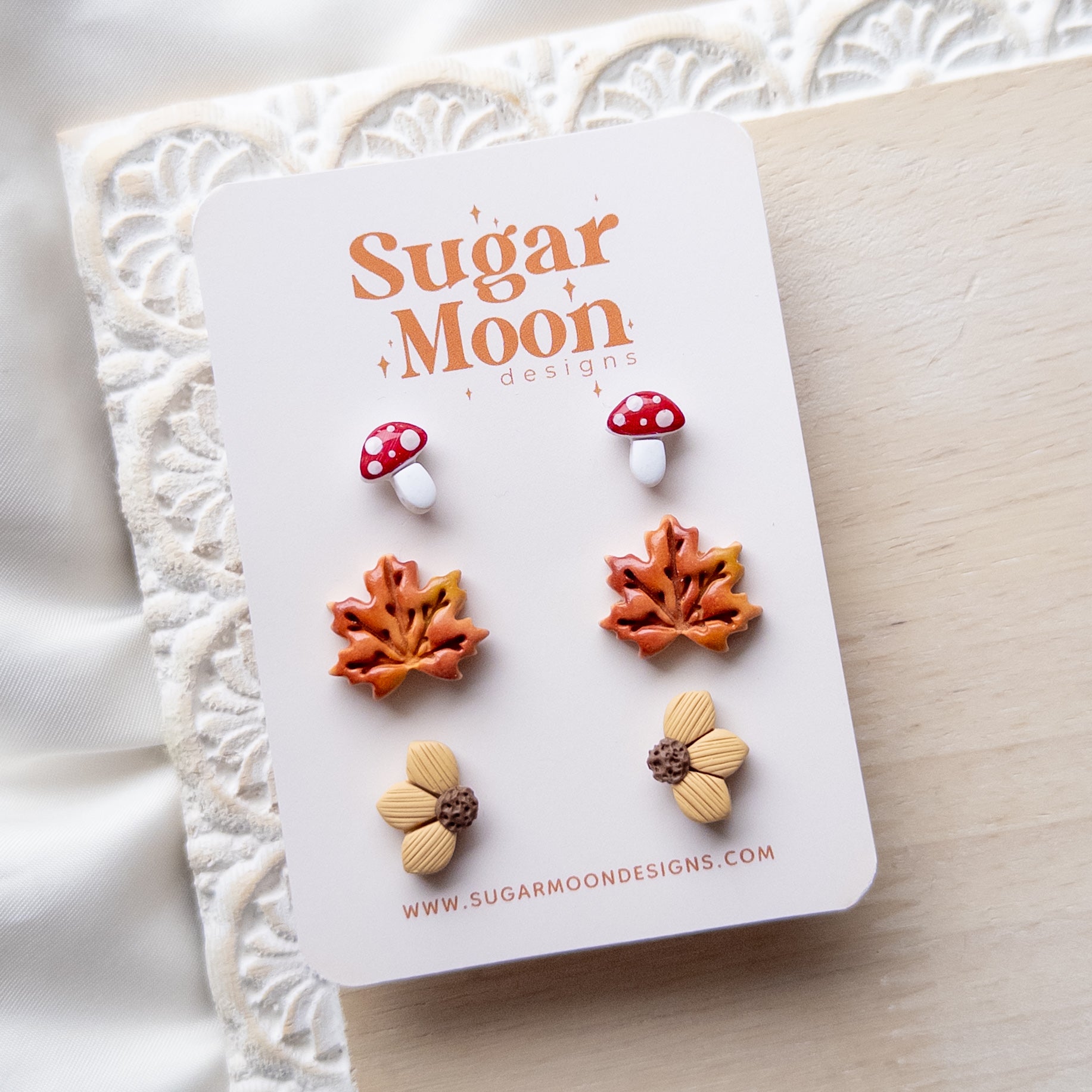 Each piece is hand crafted out of polymer clay, which is a lightweight and comfortable material.