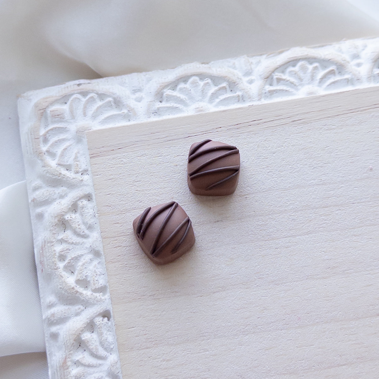 Each piece is hand crafted out of polymer clay, which is a lightweight and comfortable material.
