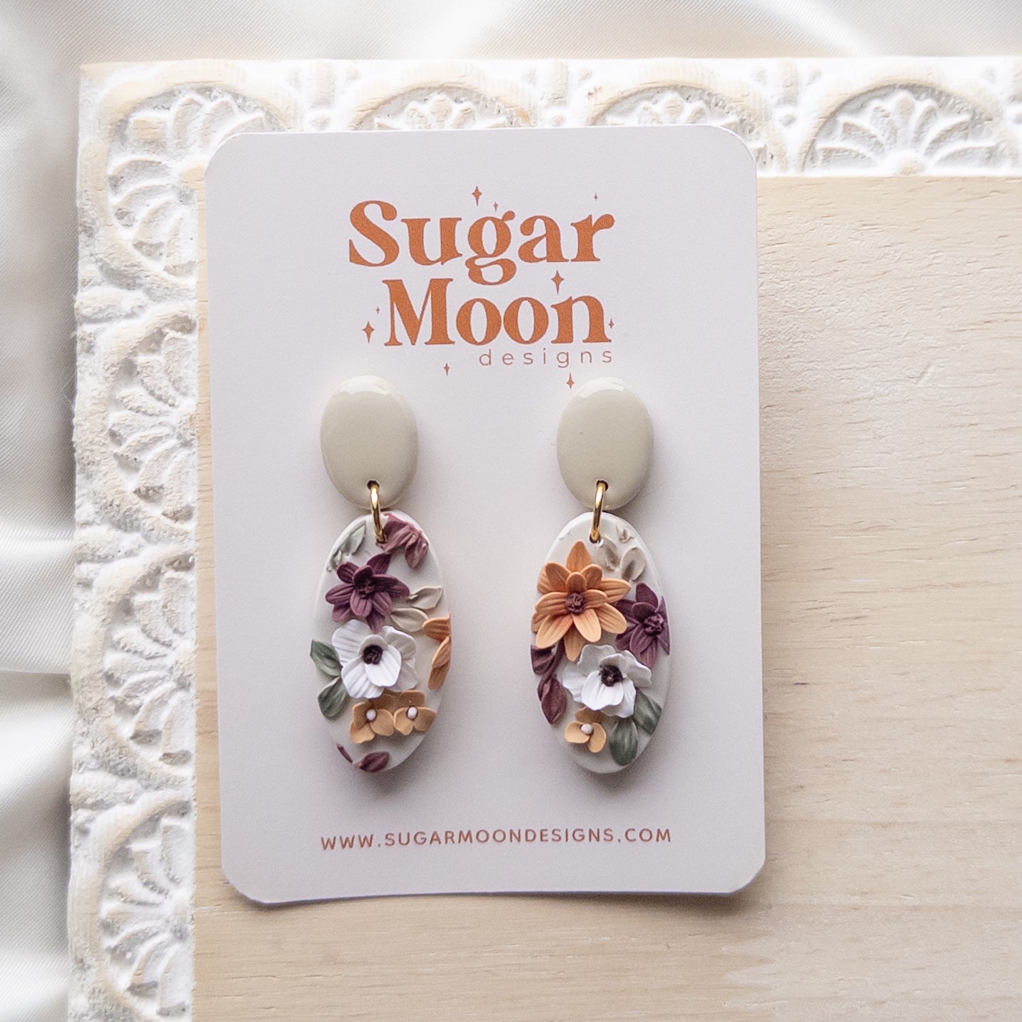 Each piece is hand crafted out of polymer clay, which is a lightweight and comfortable material.